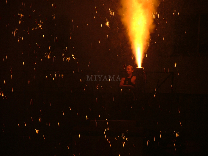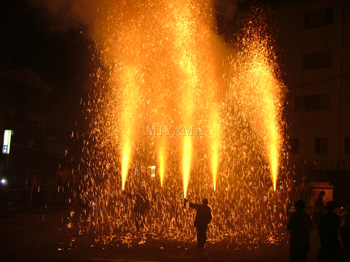 | 湯畑前駐車場で行われた、手筒花火の打ち上げも近くで見るとかなりの迫力で、あっちこっちから歓声が起こりました。 |