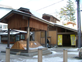 バスターミナルから徒歩5分。手前にあるのは足湯ですが、冬は使用できません。